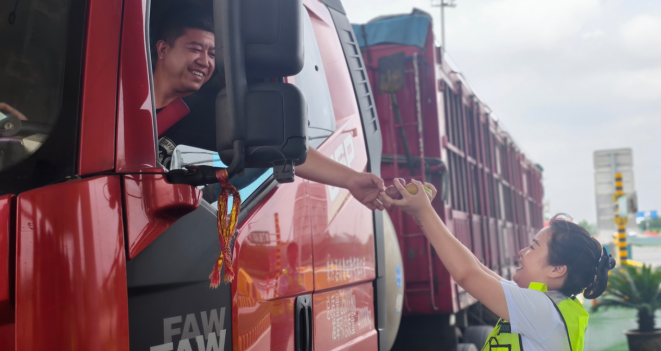 为了做好这项服务,长江管理局工作人员提前深入附近乡镇果园,精心采摘成熟的桃子、脆李等时令水果,精心包装。到了收费站,店员热情地递给司机一盒新鲜水果。 “谢谢主人,吃当地的水果解渴吧!”收到这个意想不到的“旅行物品”后,卡车司机王老无奈地说:“长途旅行,口干舌燥,这个水果脆脆的,甜甜多汁,很爽口!”今年秋天来自长江的问候,不仅有效缓解司乘人员的出行疲劳,也让南来北往的车轮传递着“长江的味道”。